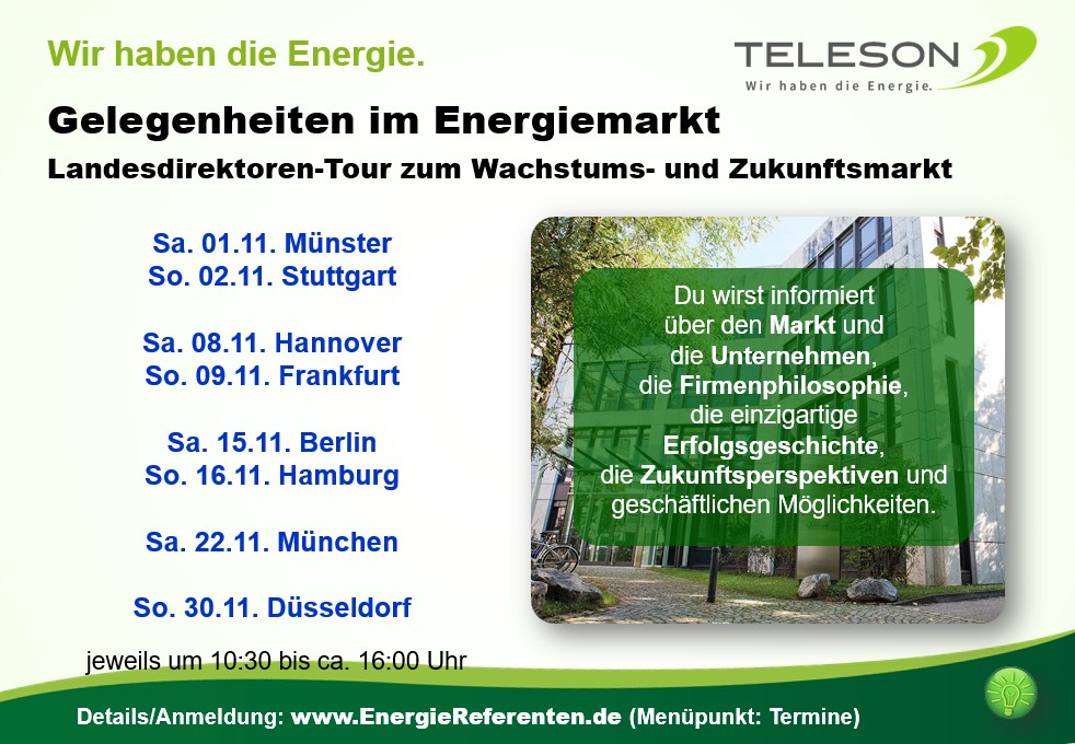 Bitte pünktlich und vor allem unsere Energiereferenten in geschäftsmäßiger Kleidung zu erscheinen!
